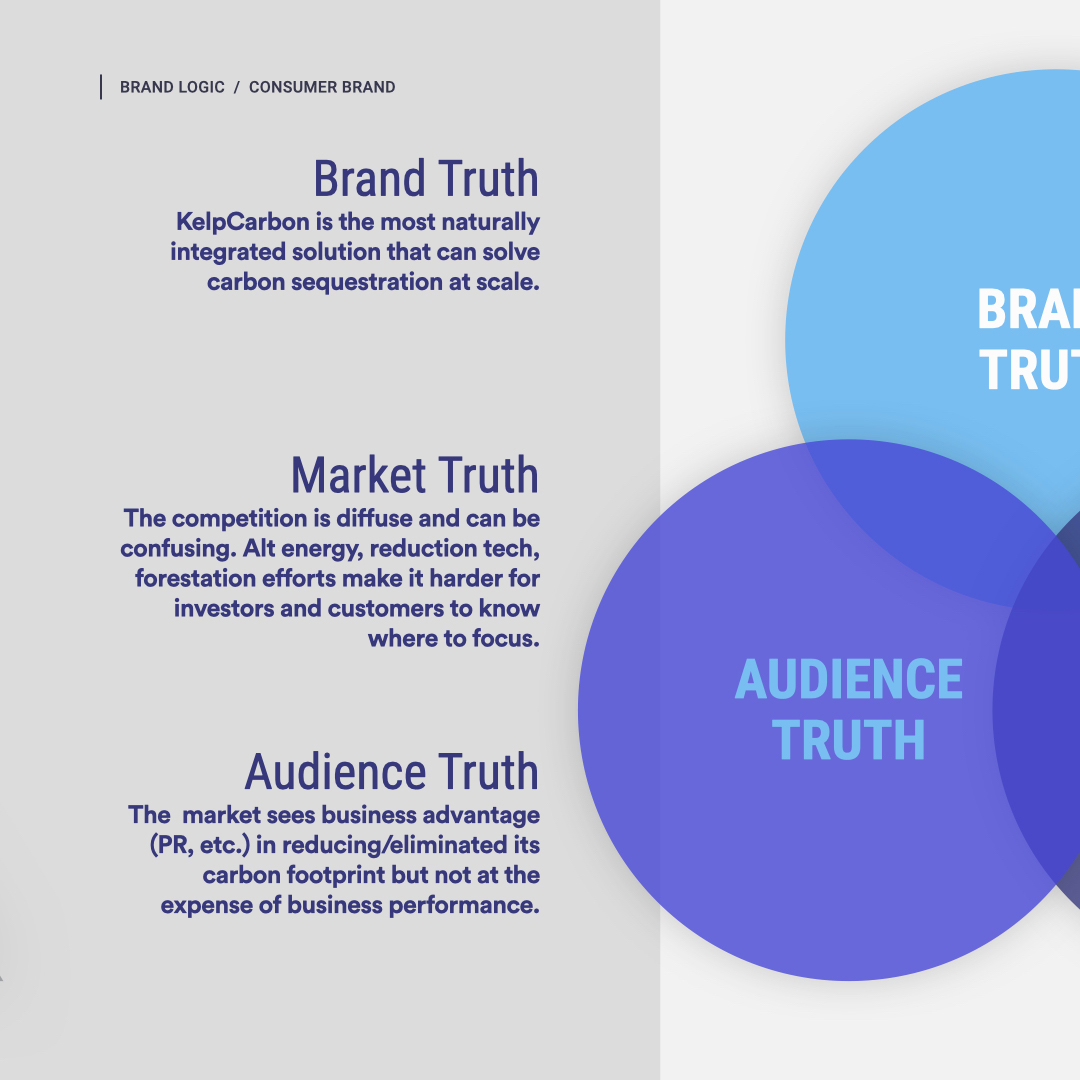 The sea horse holding a key with tabs symbolizing the chemical formula for carbon dioxide is still my favorite. However, given the technical background of the founders we settled on the letter P that resembles circuits on a board. The center line in green represents the kelp that does the carbon capture and the two white lines the oxygen the plants release back into the atmosphere.